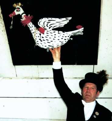 Anschließend weist er darauf hin, dass "derjenige, der den Vogel abschießt, aber nicht Mitglied der Gilde ist, innerhalb einer Stunde einen neuen Vogel besorgen und 300 l Bier an den Verein zahlen muss und trotzdem kein König ist." Ist der Vogel gefallen, wird dem neuen König unter dem Jubel der Anwesenden die Königskette umgehängt und sein Zylinder mit einem Lorbeerkranz versehen. Anschließend zieht die Gilde zum Brandenburger Tor, wo Sr. Majestät, der neue König und seine Königin der Gemeinde vorgestellt und geehrt werden.